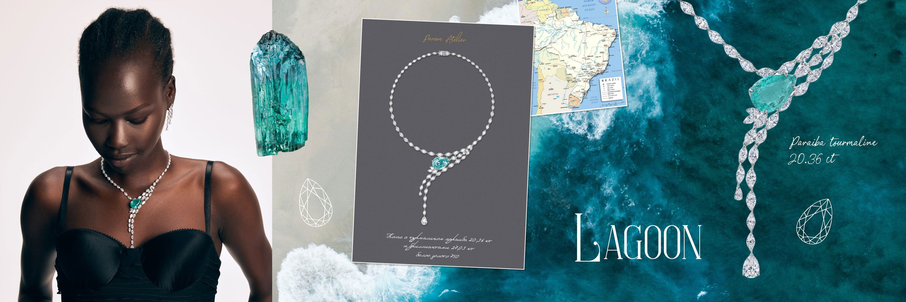 Одно из самых ярких украшений бренда, колье Lagoon — это живописный пример стиля Parure Atelier. Дизайн, кропотливо продуманный художниками, представляет свежий взгляд на классику, поэтому выглядит трендовым и бессмертным одновременно. Работа над проектом заняла полгода.