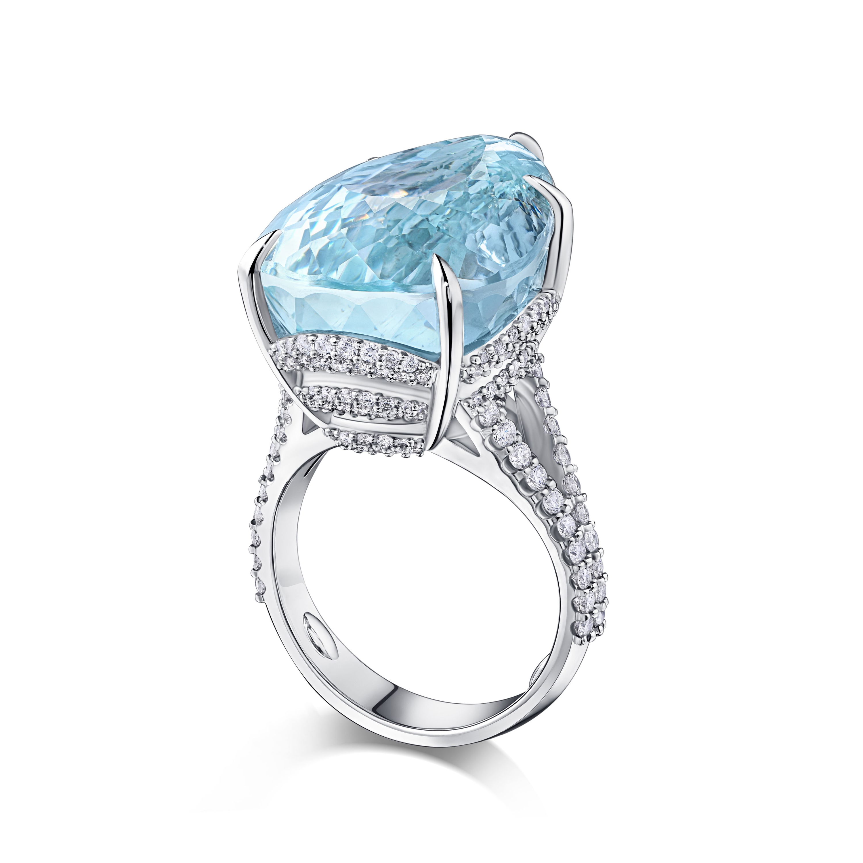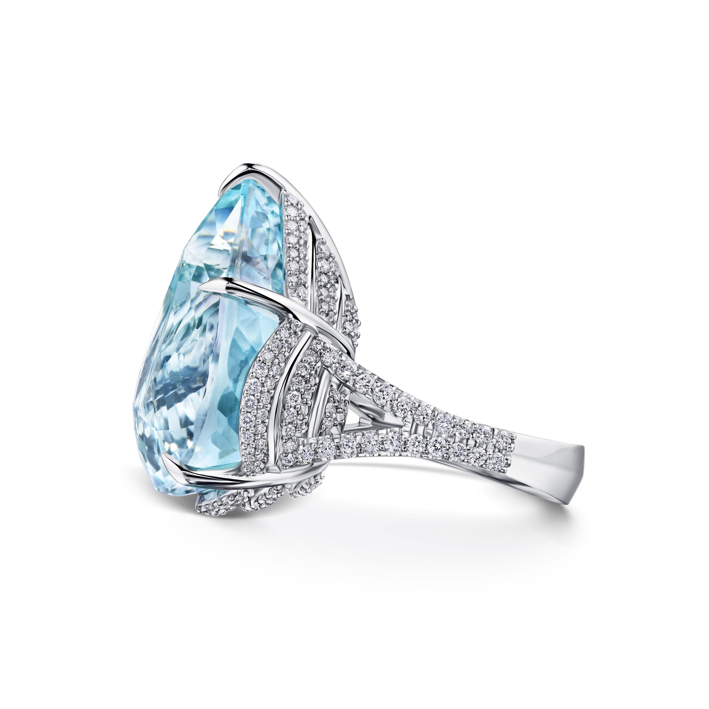 Серьги с аквамаринами общей массой 10.62 карата представляют собой изящное сочетание форм и прозрачности. Центральные камни — аквамарины весом 3.02 и 2.97 карата — выполнены в огранке «сердце» и «капля», что придаёт украшению особую лёгкость и воздушность. Каждое изделие дополнено мелкими бриллиантами, аккуратно обрамляющими основные аквамарины, а также одним небольшим овальным камнем, соединяющим две части серьги. Белое золото подчёркивает холодные оттенки аквамаринов, создавая гармоничный и сбалансированный образ. Модель отличается продуманной конструкцией, обеспечивающей комфорт при ношении и плавность движений.